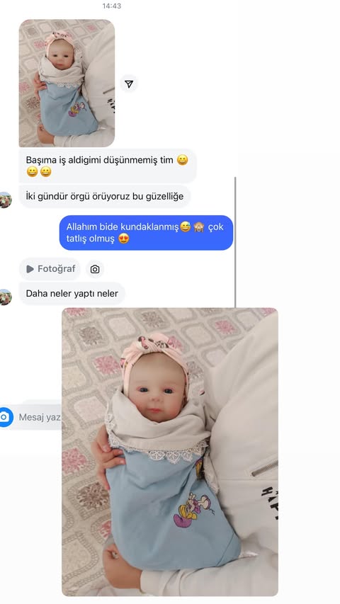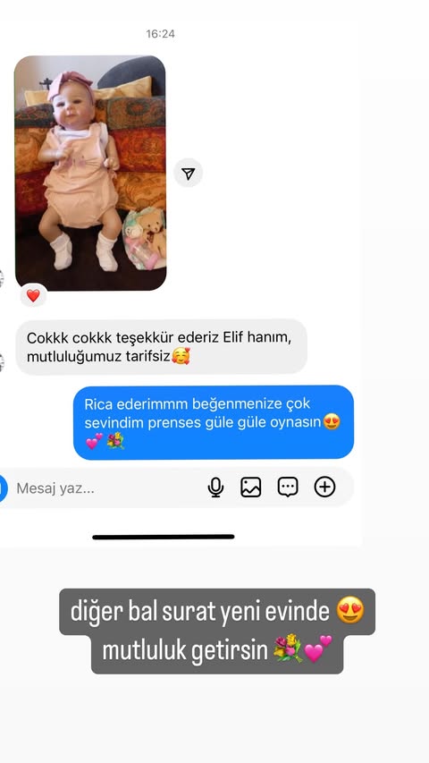 Mina K.Doğrulanmış MüşteriSilikon kalitesi muhteşem! Elime aldığımda gerçek bir bebeği tutuyormuşum gibi hissediyorum Yüz ifadesi çok doğal, dudak ve kirpikleri ince ince işlenmiş. El emeği olduğu belli.Bebella Silikon Bebek Bu Yorumu Destekliyor Musunuz? 55 0