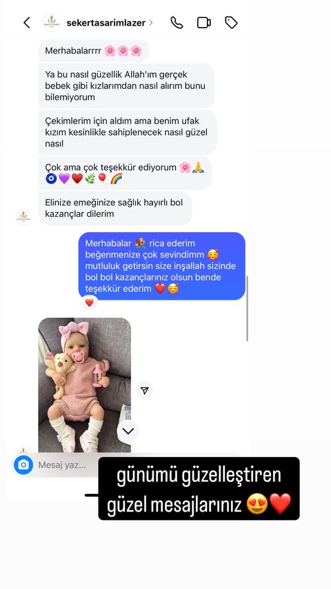 Ebru N.Doğrulanmış MüşteriYeğenime doğum günü hediyesi olarak aldım, kutusundan çıkardığı anda sarıldı ve “Benim bebeğim!” dedi. 🎂💞 Ambalajı, kokusu, kıyafetleri — her şeyi mükemmel. Gerçekten kalpten yapılan bir ürün.Bebella Silikon Bebek Bu Yorumu Destekliyor Musunuz? 15 0